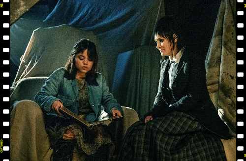 A relação entre Lydia e sua filha Astrid é um dos pontos altos do filme. Astrid, interpretada por Jenna Ortega, é uma personagem que só acredita no sobrenatural quando o vê, e seu maior trauma é não poder ver o pai falecido. A dinâmica entre mãe e filha em tela é envolvente, com Astrid sendo um contraponto ao que Lydia era no passado, mas ainda compartilhando o desejo de entender o mundo dos mortos.